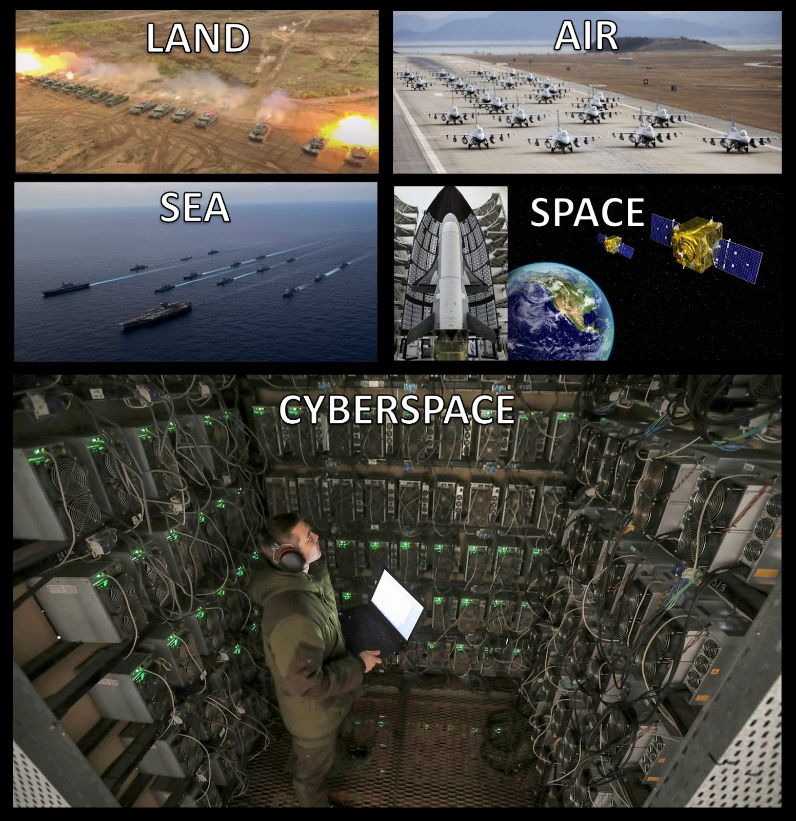 War is the globally adopted Proof-of-Work social consensus protocol that nodes (countries) use to validate the legitimate state of property and its chain of custody. Militaries project force across time (i.e. energy) in a fundamental game of probability to trigger a capitulation event. This is functionally identical to Bitcoin PoW miners projecting energy to probabilistically trigger the end of each block.